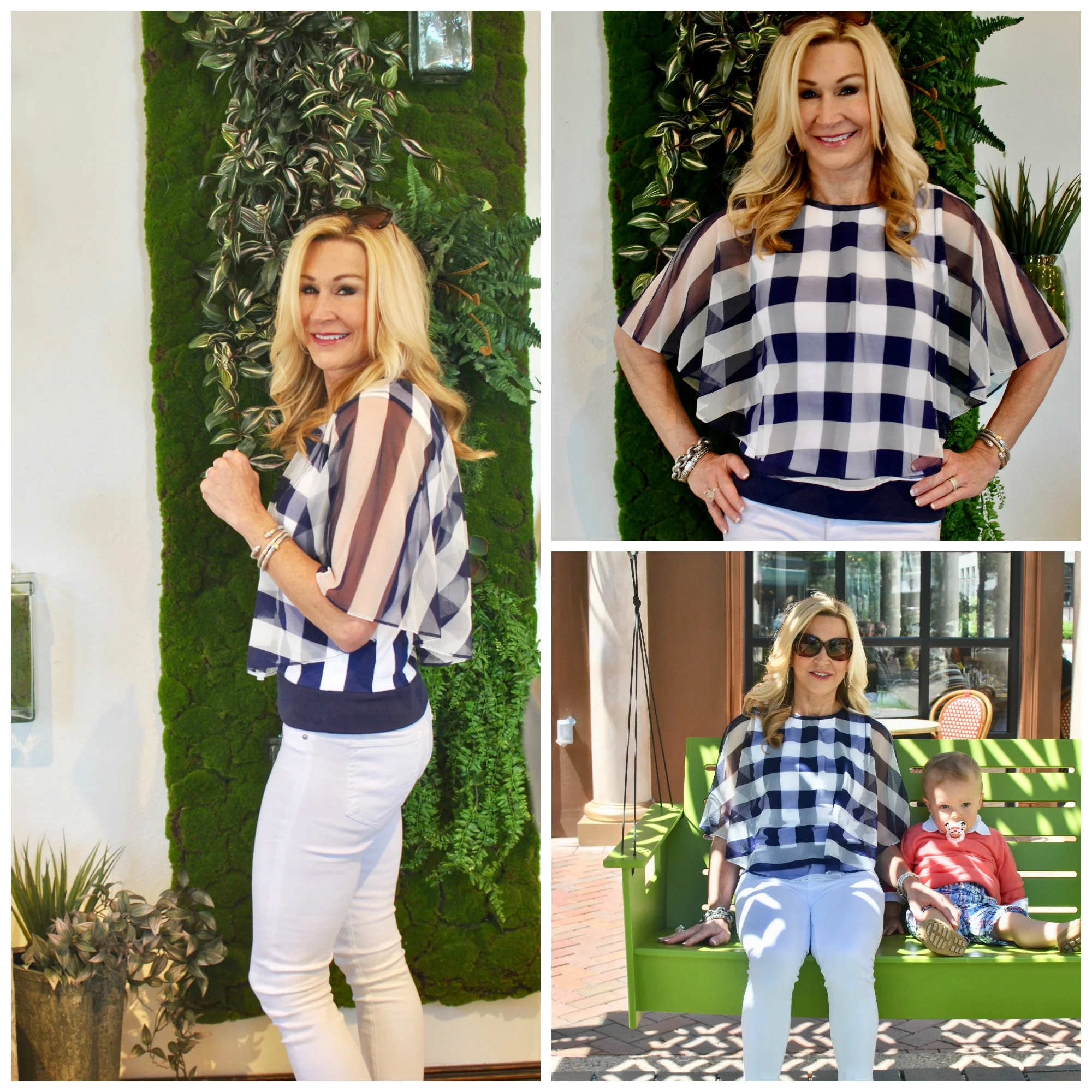Anthropologie plaid top (similar), white AG jeans, Chloe espadrilles